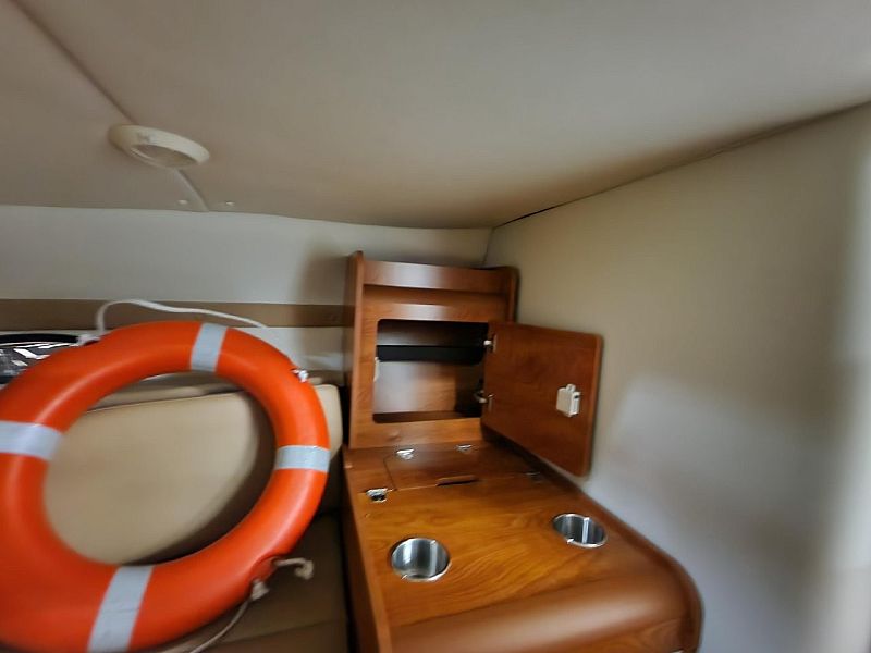 Bardzo mało używany (silnik ma przepracowane 59 godzin), trzy sezony jacht nie był nawet wodowany, przechowywany w hali, i co roku serwisowany zgodnie z zaleceniami stoczni Rinker i producenta silnika Volvo Penta.