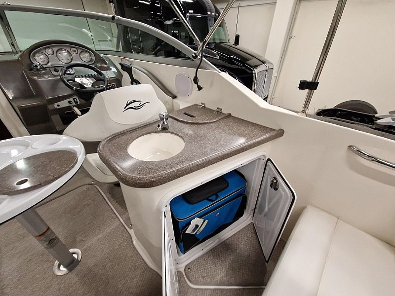 Bardzo mało używany (silnik ma przepracowane 59 godzin), trzy sezony jacht nie był nawet wodowany, przechowywany w hali, i co roku serwisowany zgodnie z zaleceniami stoczni Rinker i producenta silnika Volvo Penta.